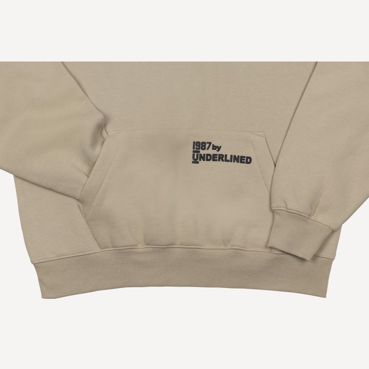Premium heavyweight fleece, rib banded hem and cuffs, kangaroo pocket, lined hood.  1987 by Underlined high density printed logo.