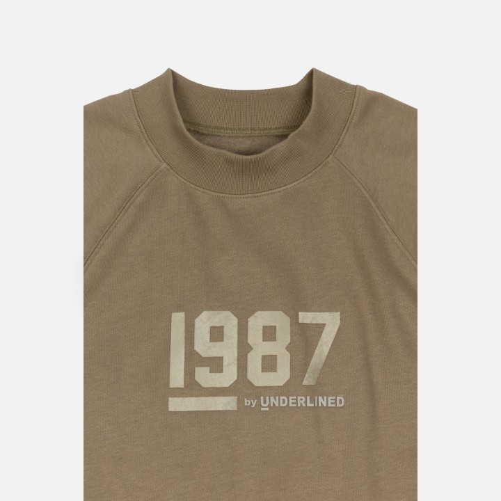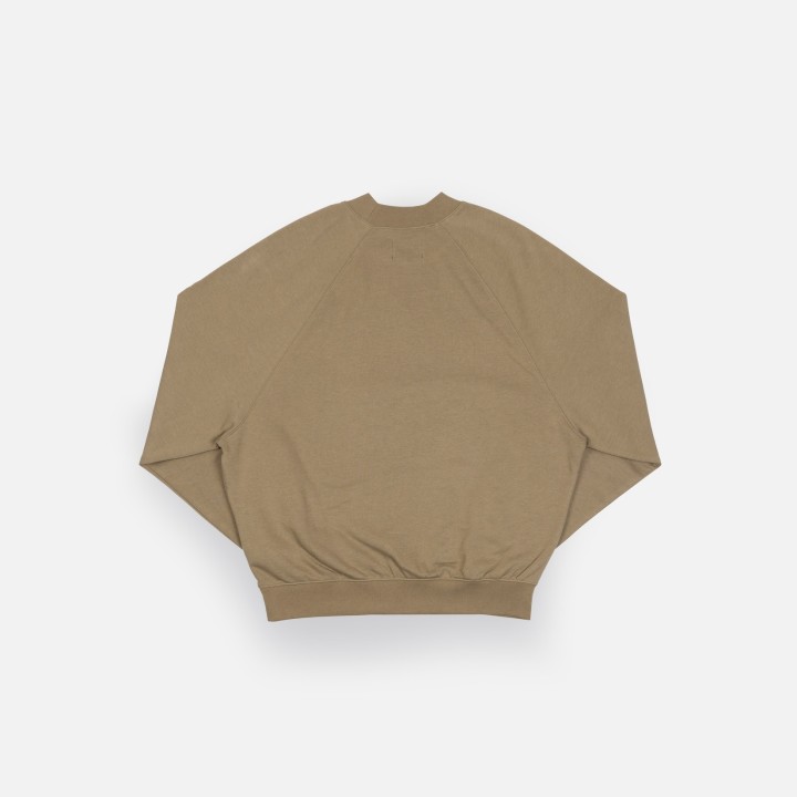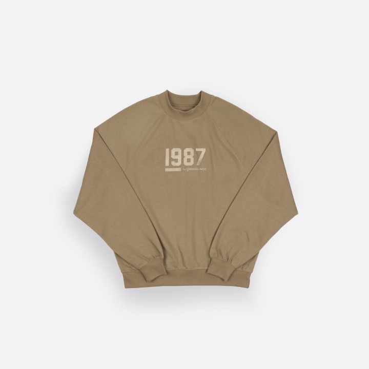 Classic fleece sweatshirt features rib neck, rib banded hem and cuffs. Raglan shoulder enhances the comfortable fit.  1987 by Underlined soft touch felt logo.