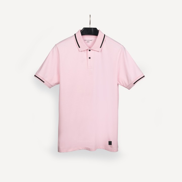 100% Cotton knit Polo features contrast tipped collar and sleeve cuffs with 2 button front placket.