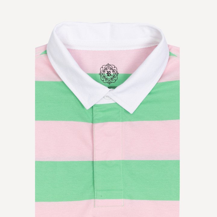 This iconic style features long sleeves and a woven buttoned collar with ribbed cuffs.  Whether you choose solids, yarn dyed stripes or color blocked – this is the perfect casual wardrobe addition.  The design is completed by a crest or a Royal Attitude® logo at the hem.  Royal Attitude® high density rubber logo at hem or high density crest at chest.
